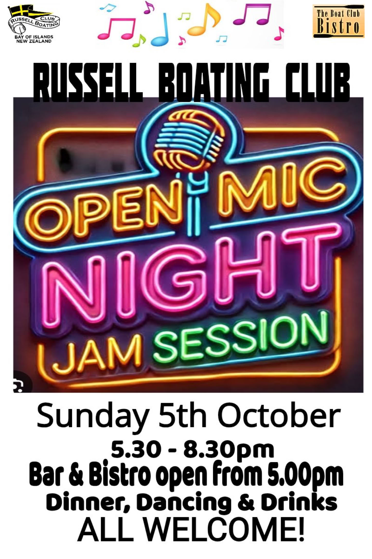 Delicious meals from 'The Boat Club Bistro' available from 5.00pm till 8.30pm and our Bar will be open for thirst quenching drinks from 5.00pm.