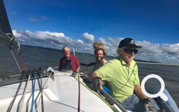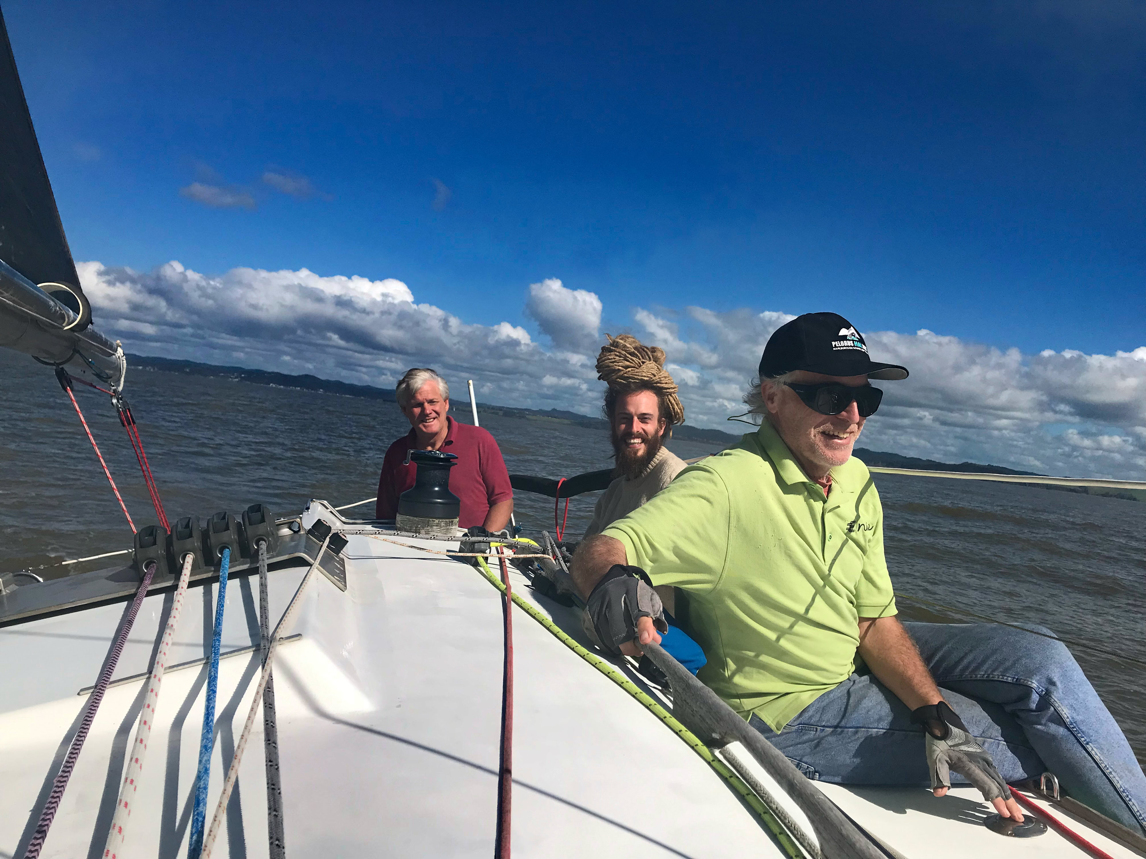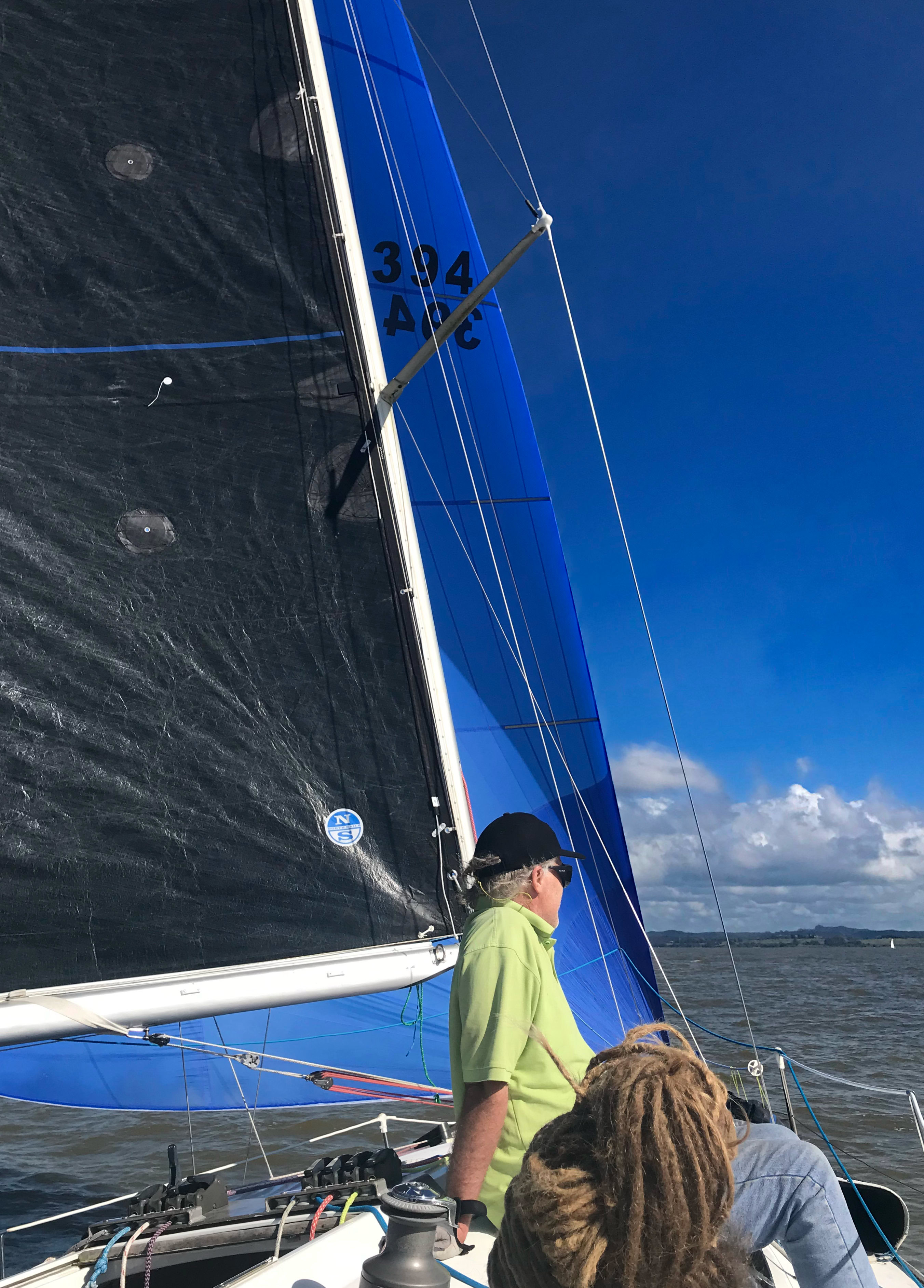 After a week of wind and rain the weather Gods turned it on for us last Sunday for race 3 of the Willis Sails Winter Series. A Northerly of 8-10 kts saw the fleet sail out around the Black Rocks and across to Motuterakihi Islands, back to Caters, Northerns and on to the finish. On the way out to the Black Rock we sailed by the Kerikeri racing fleet. A big thanks to Simon for helping with OOD duties.