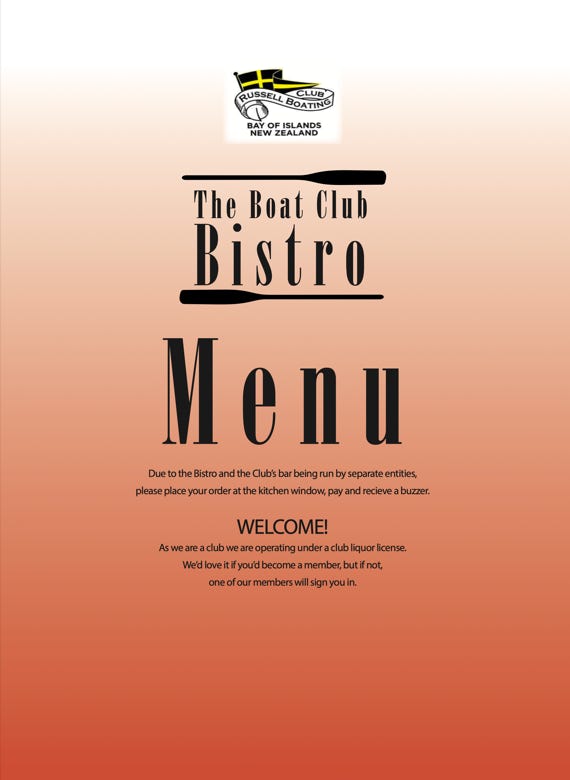 The Boat Club Bistro is open from 17:00 to 20:30 hrs on Wednesdays, Fridays, and Sundays.